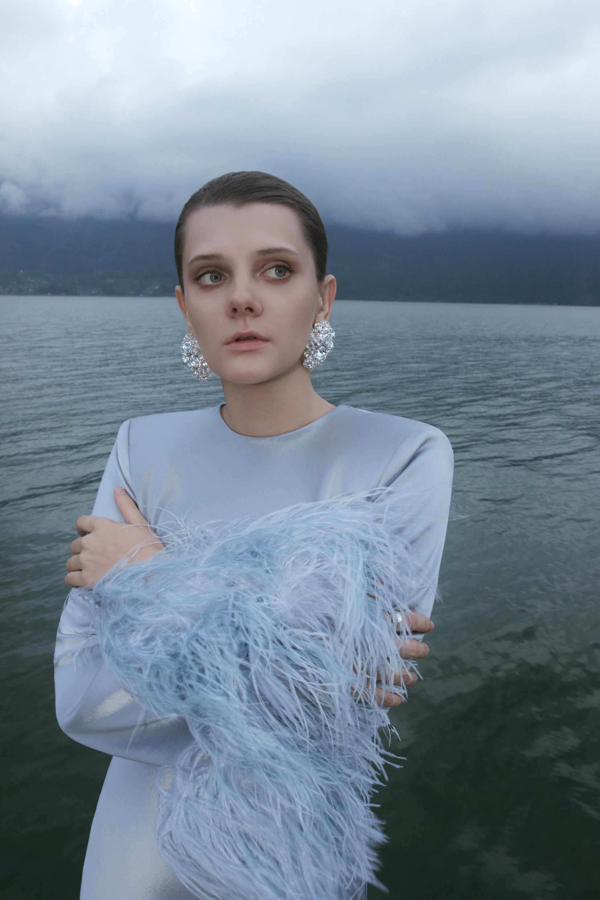 Finished with detachable feather cuffs.